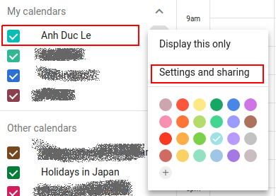 Các bạn có thể thêm, xoá, chia sẻ calendar của bạn cho người mà bạn muốn hoặc đơn bạn có thể add calendar về APU Academic Calendar.